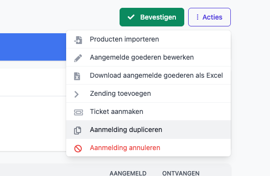 - Ga in het fulfilmentportaal naar Goederen aanmelden en klik op de aanmelding die je wilt dupliceren.