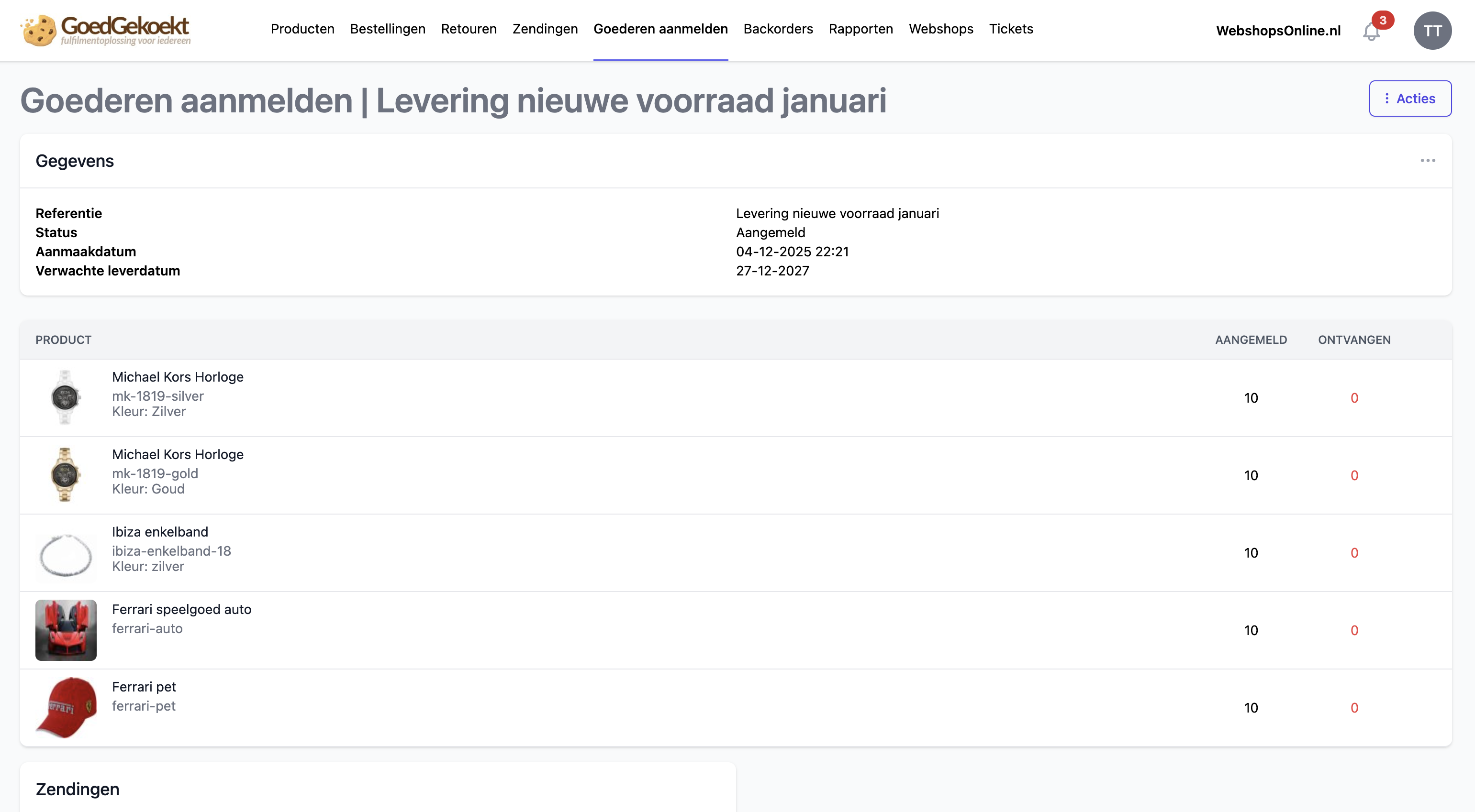 In deze handleiding lees je hoe je een goederenaanmelding in het fulfilmentportaal kunt dupliceren. Bij het dupliceren worden alle producten uit de geselecteerde aanmelding automatisch meegenomen. Dit is vooral handig wanneer je regelmatig dezelfde producten naar het fulfilmentbedrijf verzendt.