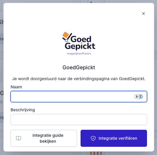 - Ga naar GoedGepickt en kies hier voor Add integration.