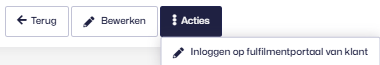 - Klik bovenin het scherm op Acties en vervolgens op Inloggen op het fulfilmentportaal van klant.