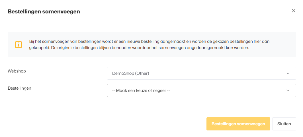 - Klik op de knop Bestellingen samenvoegen om de keuze te bevestigen.