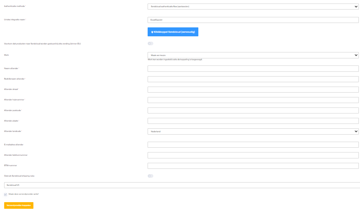 Sendcloud instellen in GoedGepickt