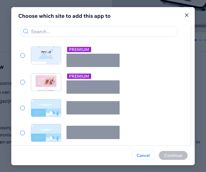 Je wordt nu naar een pagina geleid waar je de webwinkel waarop je de GoedGepickt app wilt installeren kunt kiezen. Selecteer de juiste webwinkel en druk op Continue.
