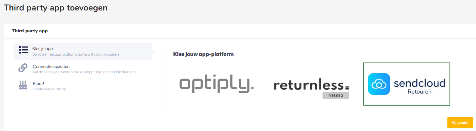 - Kies in het volgende scherm voor Sendcloud Retouren en druk op Volgende.