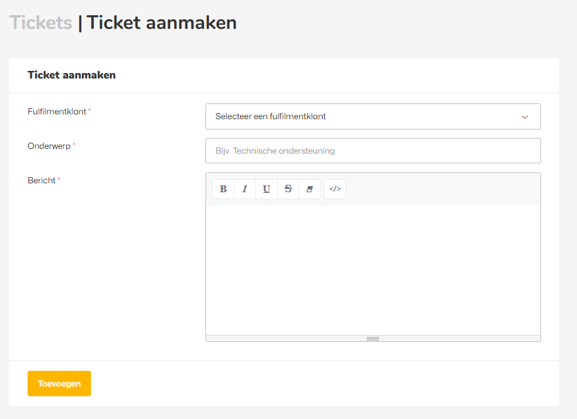 De ticketfunctionaliteit is een bèta functionaliteit en kan op dit moment alleen aangezet worden door GoedGepickt. We verzoeken je dan ook om contact met ons op te nemen als je de fulfilmenttickets wilt gebruiken.